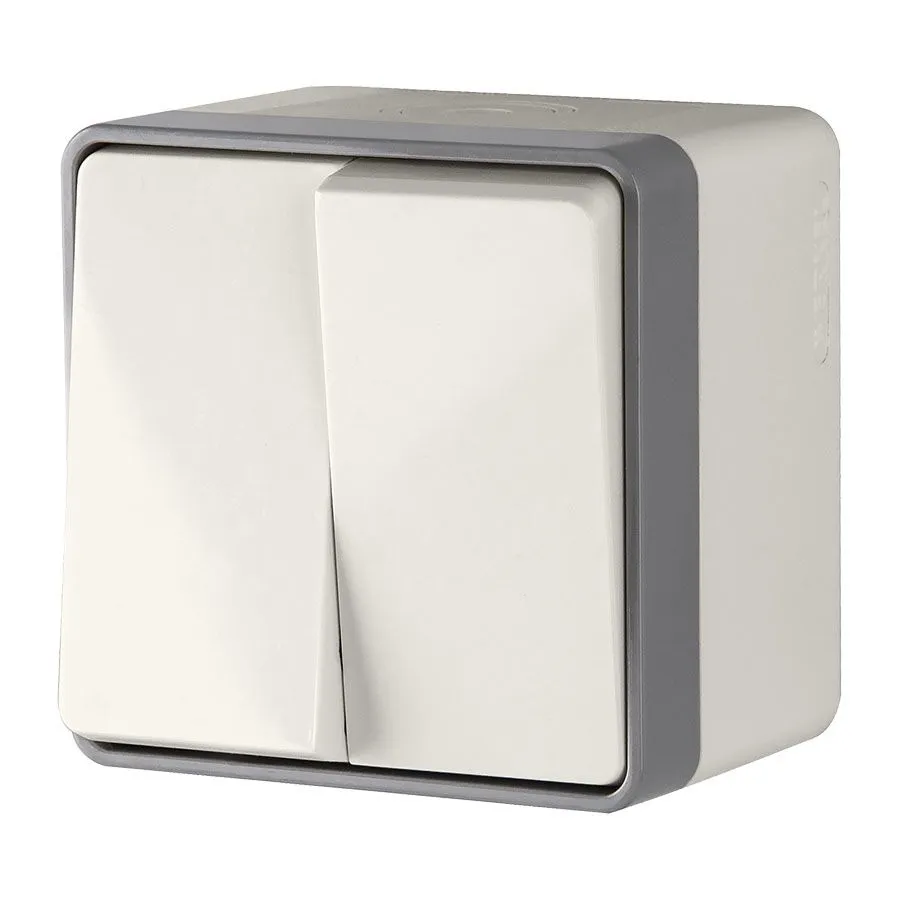 Выключатель двухклавишный влагозащищённый WL15-03-02 — это сочетание функциональности, безопасности и современного дизайна , которое станет важным элементом вашей системы управления освещением в сложных условиях эксплуатации. Выбирайте проверенные решения от Werkel и создавайте комфортное и безопасное пространство уже сегодня!