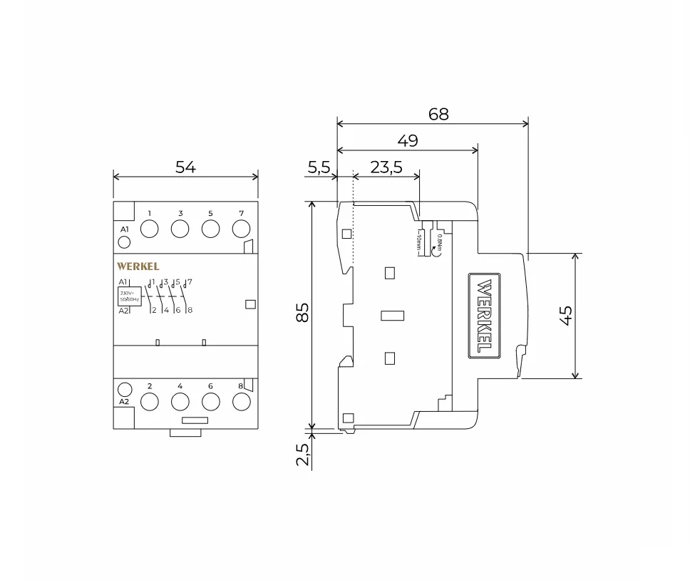 • Долговечность и надежность: Благодаря использованию высококачественных материалов, таких как медь с серебряным напылением для контактных пар, контакторы Werkel обеспечивают стабильную работу даже при частых включениях и выключениях.
